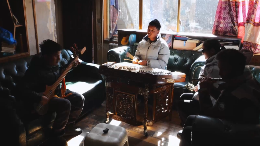 在拉萨东郊老安居园的一处小院,达瓦次仁与乐团成员们同住,也在这里收获了爱情——他与乐团创始人达琼的妹妹朋琼相恋结婚,如今已是两个孩子的父亲。没有演出时,他们上午卖自制藏香,下午排练,生活简单却充实。