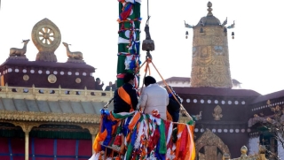 西藏大昭寺经幡柱“换装”迎藏历新年