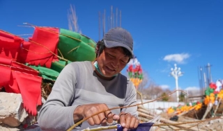 缝制五彩经幡树 迎接藏历新年
