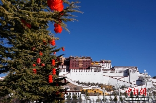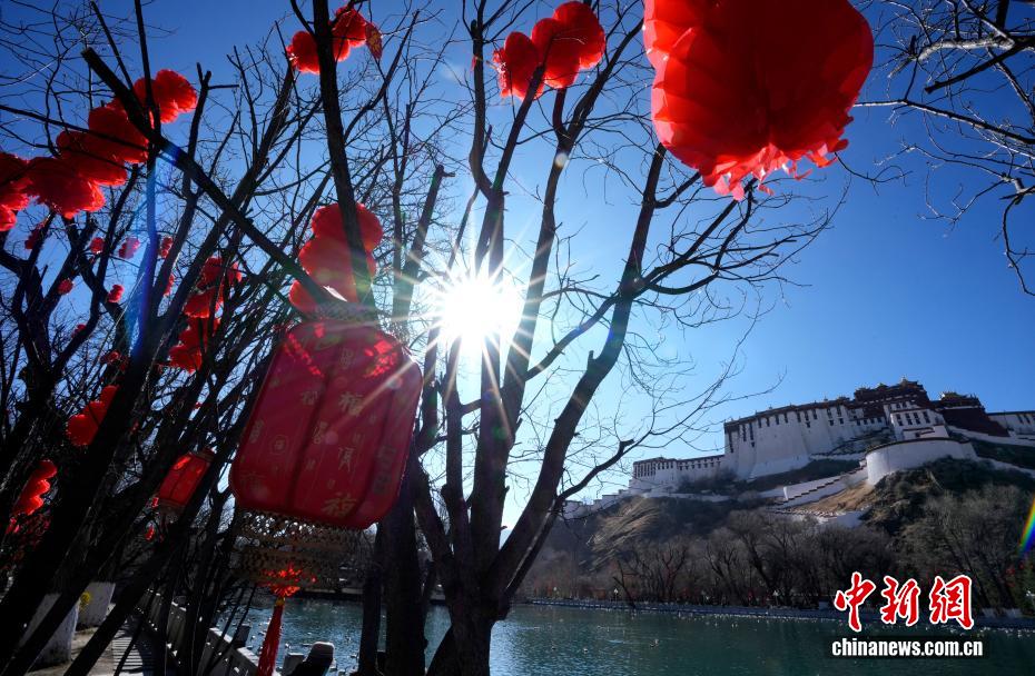 2月3日,西藏拉萨布达拉宫广场,红灯笼装点节日氛围。中新社记者 李林 摄