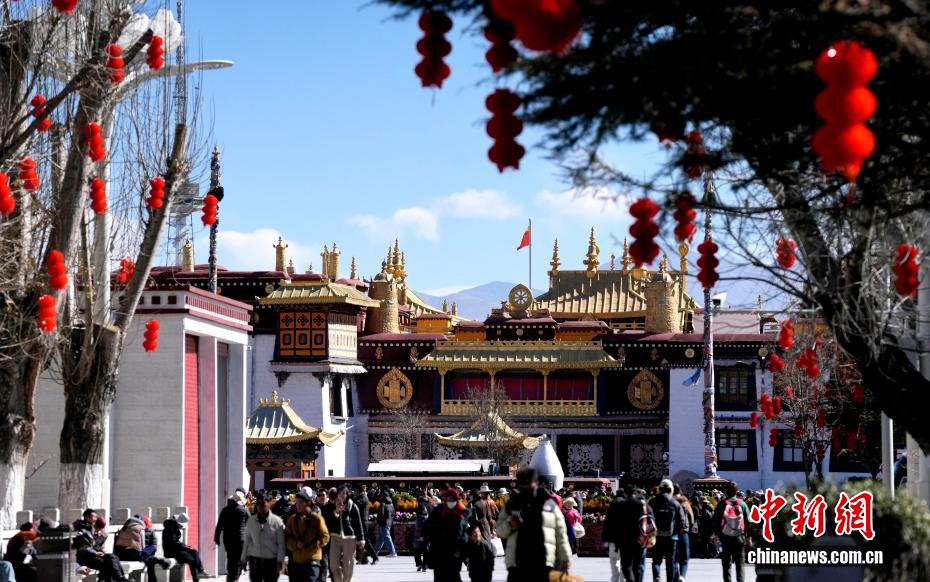 2月3日,西藏拉萨,民众在大昭寺广场拍照。中新社记者 李林 摄