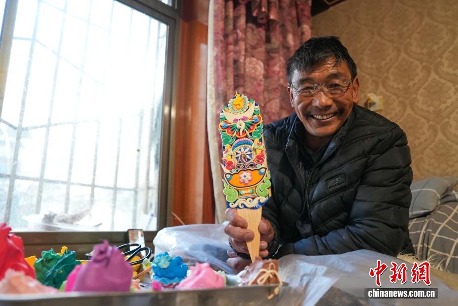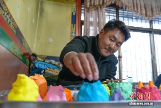 2月4日,随着藏历新年临近,拉萨街头年味渐浓,年货市场上的“孜扎”迎来热销。酥油花藏语称“孜扎”,是藏历新年吉祥物切玛盒的重要组件,也是藏族民众家中必备的年货。酥油花以酥油为主要原料,由匠人纯手工捏制而成,造型涵盖佛像、人物、花卉树木、飞禽走兽等,常见图案包含吉祥八宝、和谐四瑞、长寿图等,承载着藏族民众对新年平安吉祥、万事顺遂的美好祈愿。