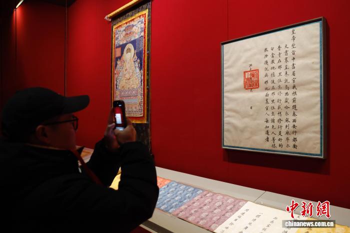 2月9日,由故宫博物院联合西藏自治区文物局等多家文博单位共同举办的“万法归一:萨迦寺历史文化与艺术”展在北京开幕。图为嘉宾参观展览。中新社记者 韩海丹 摄