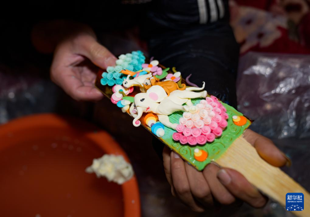 2月12日,在拉萨市林廓东路,手工艺人在制作酥油花。新华社记者 丁增尼达 摄