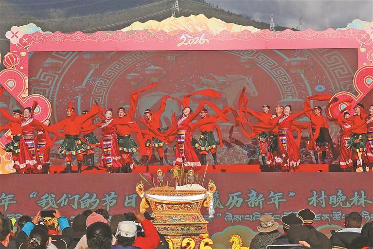 2月13日,自治区2026年“我们的节日·春节藏历新年”村晚林芝主场示范活动在米林市羌纳乡西嘎门巴村圆满举行。