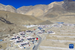 2月16日拍摄的西藏定日县长所乡古荣村灾后重建的新居(无人机照片)。