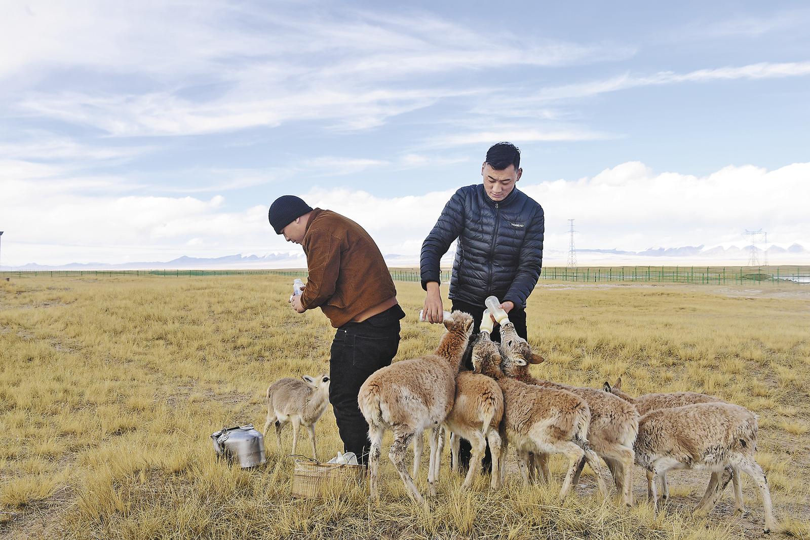 “奶爸”喂养救助的小藏羚羊。青海日报记者 张多钧 摄