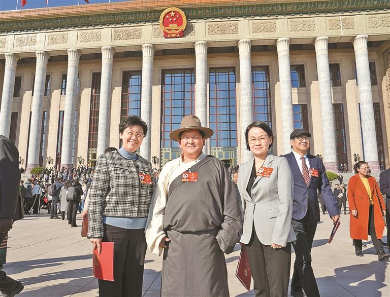 图为住藏全国政协委员在人民大会堂前合影。记者 陶玥 摄