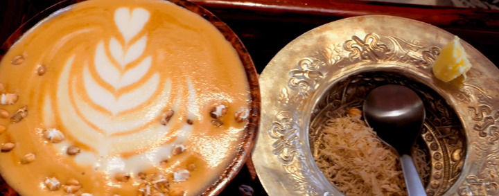她把奶渣和酥油放进藏式木碗的盖子里,与咖啡分开呈现,让顾客自己根据口味添加。普通杯子装“不对味”,换成藏式木碗和盘子后,“一下就对了”——“拉萨拿铁”就此诞生。