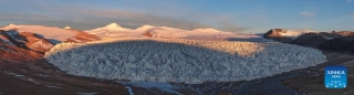 清晨的藏色岗日冰川(无人机拼接照片,3月10日摄)。新华社发(四郎江村摄)