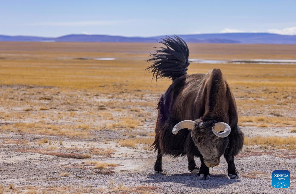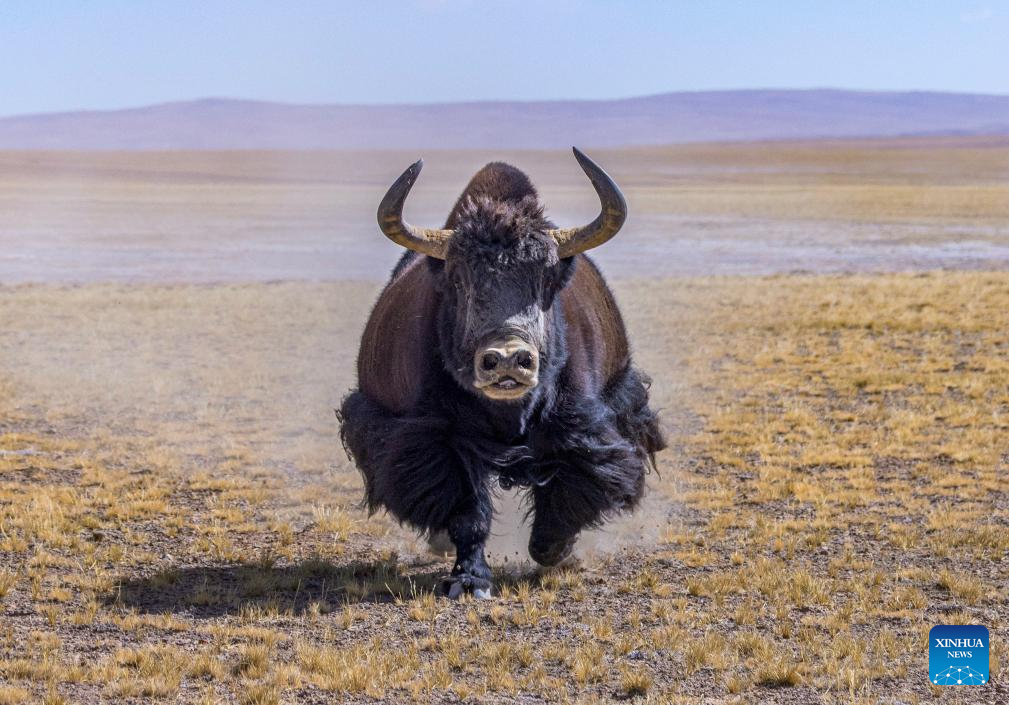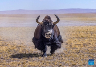 这是在藏色岗日冰川附近拍摄的野牦牛(3月12日摄)。新华社发(四郎江村摄)