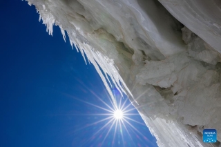 阳光下的藏色岗日冰川(3月10日摄)。新华社发(四郎江村摄)