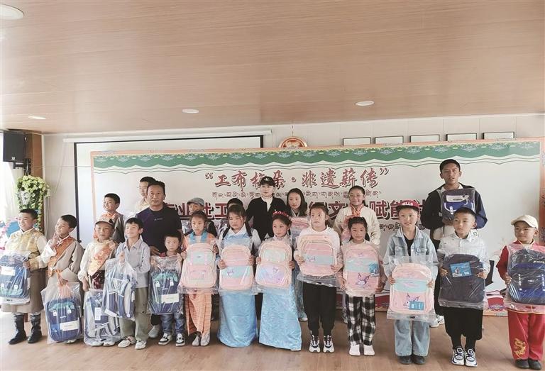 “社区爸爸”及爱心人士为孩子送去学习用品。图由白玛岗社区提供