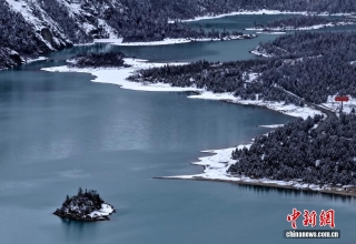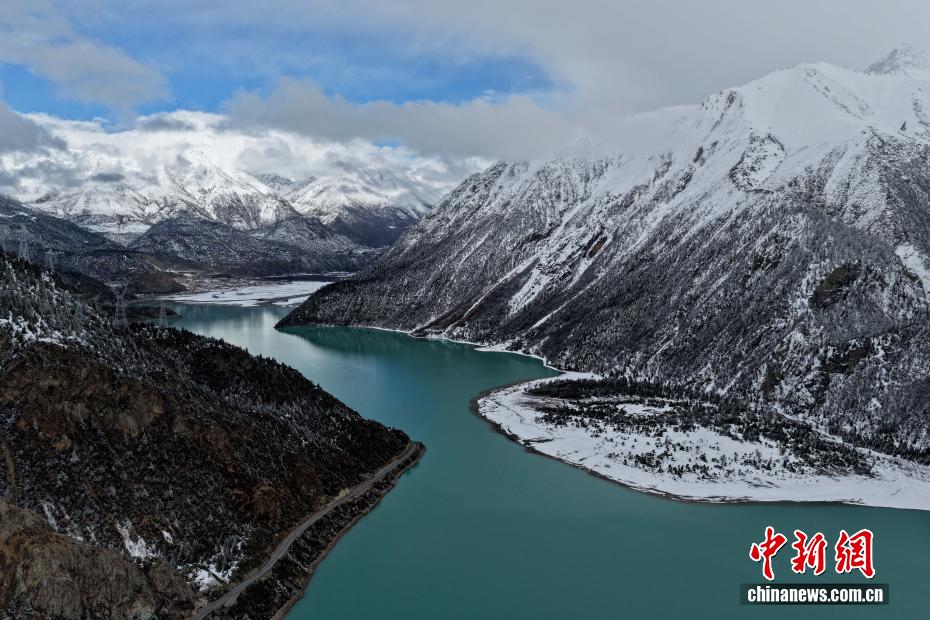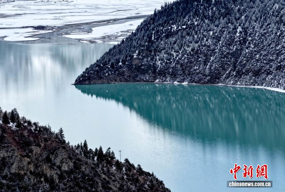 3月25日,西藏昌都然乌湖雪后景色。(无人机照片)中新社记者 李林 摄