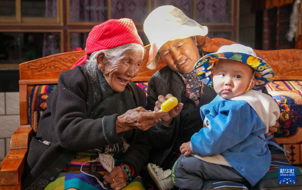 如今的生活发生了翻天覆地的变化。嘎多一家购买的手扶拖拉机已更换成了小型货运卡车,这几年又添置了小汽车,出行、生产愈发便捷。嘎多老人住在宽敞明亮的两层藏式民居里,儿孙绕膝,还能按时领取补助,看病吃药也能享受报销政策。这样衣食无忧、其乐融融的幸福日子,让老人满心欣慰与感激。