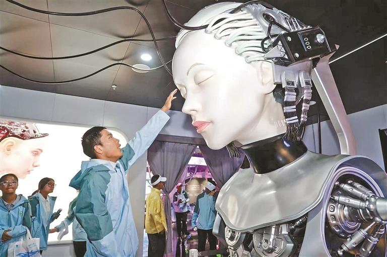 拉萨北京实验中学研学团学生参观艺云数字艺术中心。