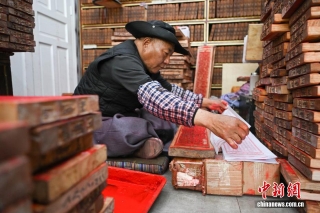 4月21日,西藏雪堆白技工学校手工艺人在印刷《大藏经》。中新社记者 贡嘎来松 摄