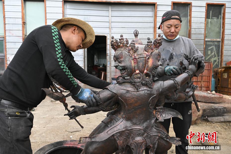 4月21日,西藏雪堆白技工学校罗布顿珠老师在认真地进行金属锻造。中新社记者 贡嘎来松 摄