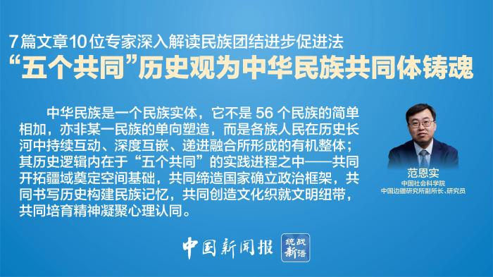面对世界百年未有之大变局,只有用“五个共同”历史观为中华民族共同体强基铸魂,才能真正把握中华民族多元一体格局的历史纵深与未来向度,才能更加紧密地团结起来,在中国式现代化的道路上阔步前行,为实现中华民族伟大复兴的中国梦同心协力、矢志奋斗。