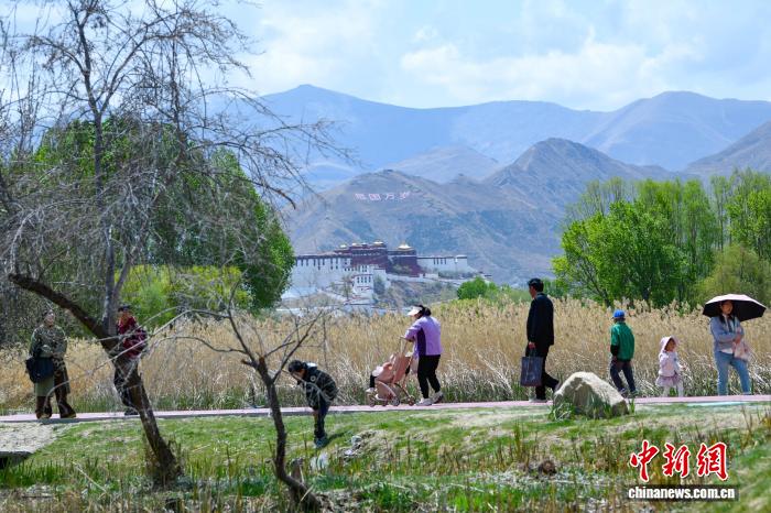 4月26日,正值周末,众多拉萨市民前往拉鲁湿地,沿步道缓步游览、亲近自然,悠然邂逅春日美景。中新社记者 贡嘎来松 摄