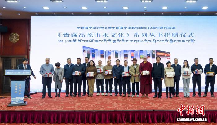 4月24日,《青藏高原山水文化》系列丛书捐赠仪式现场,图书馆和研究机构代表获赠系列丛书。 (中国藏学出版社供图)
